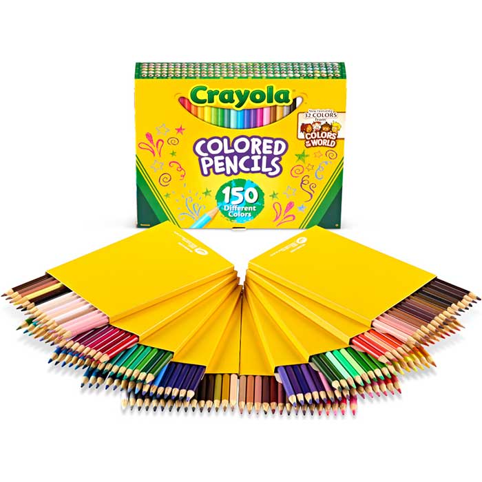 • CRAYOLA COLORED PENCIL SET: Includes 150 pencils—120 classic colors and 30 Colors of the World skin tones.