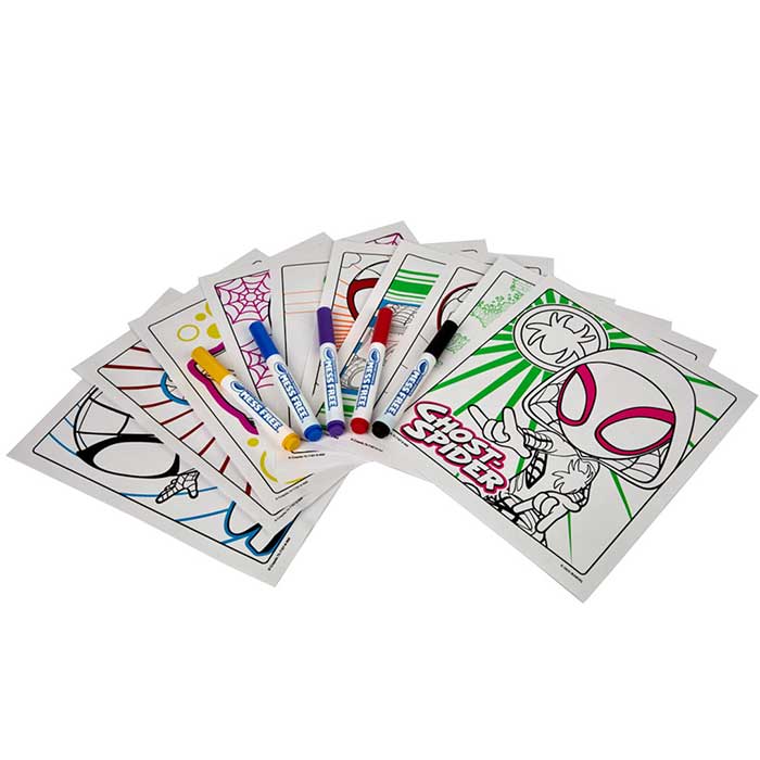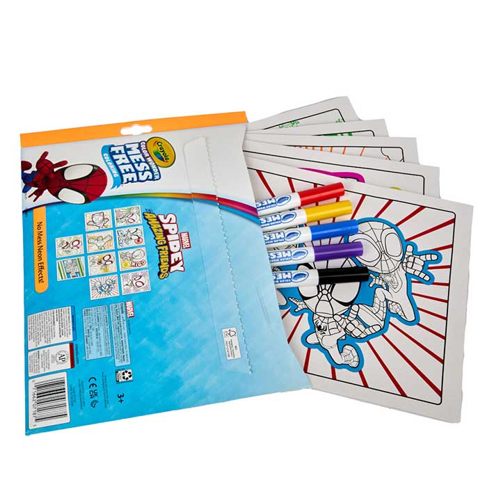 • Swing into mess-free creativity with the Crayola Color Wonder Spidey and His Amazing Friends Neon Coloring Kit! Featuring 10 neon shimmer pages and 5 Color Wonder markers, this set lets kids bring Spidey’s adventures to life with bold, vibrant colors that magically appear on special paper. The markers won’t show up on skin, furniture, or clothing, making cleanup a breeze. With folder-style packaging for easy storage and travel, it’s perfect for on-the-go fun. Safe and nontoxic, this superhero-themed art kit makes a great gift for toddlers and kids ages 3 and up. Let the coloring adventures begin!