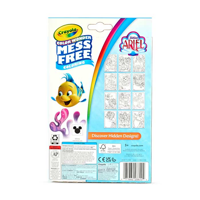 • Dive into creativity with the Ariel Color Wonder Mini Box Set! Featuring 12 mini coloring and activity pages of Disney Junior's Ariel and 4 Color Wonder markers, this set ensures mess-free fun. Colors magically appear only on special Color Wonder paper, keeping everything clean. Perfect for travel, this compact set keeps preschoolers entertained on the go. Inspired by Ariel's under-the-sea adventures, it's a delightful gift for toddlers, safe and nontoxic. Ideal for birthdays, holidays, or just because, this set celebrates the young mermaid who found her voice.<