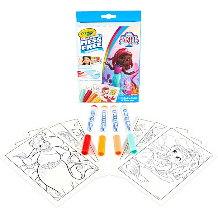• ARIEL COLOR WONDER MINI BOX SET: Includes 12 mini coloring and activity pages featuring Disney Junior's Ariel, along with 4 Color Wonder markers.