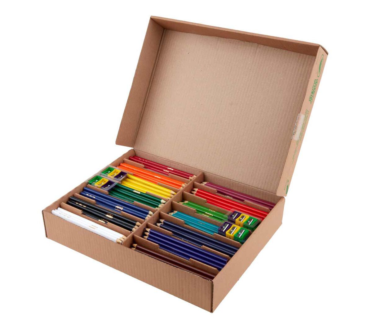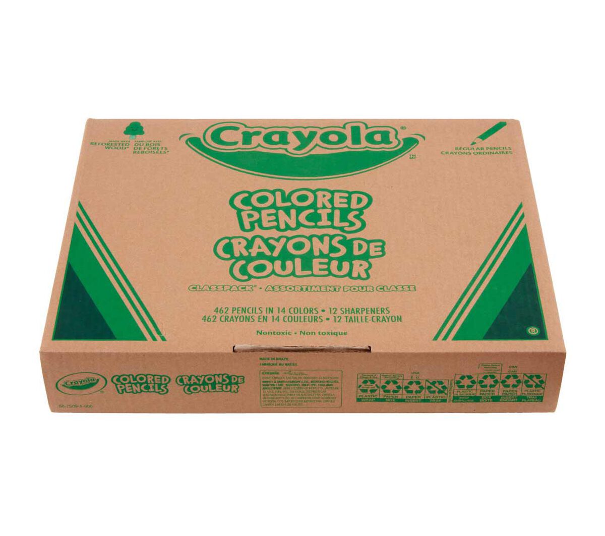 PACKAGE CONTENTS: Crayola Colored Pencils Classpack with 462 pencils in 14 colors and 12 pencil sharpeners.