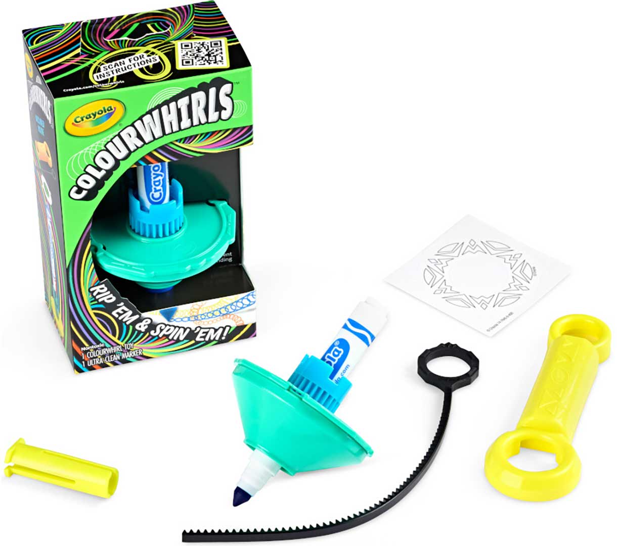 • INCLUDES: 1 Colourwhirl (spinner, handle, rip cord, adaptor, marker holder), 1 re-colorable discs, and 1 ultra-clean markers.