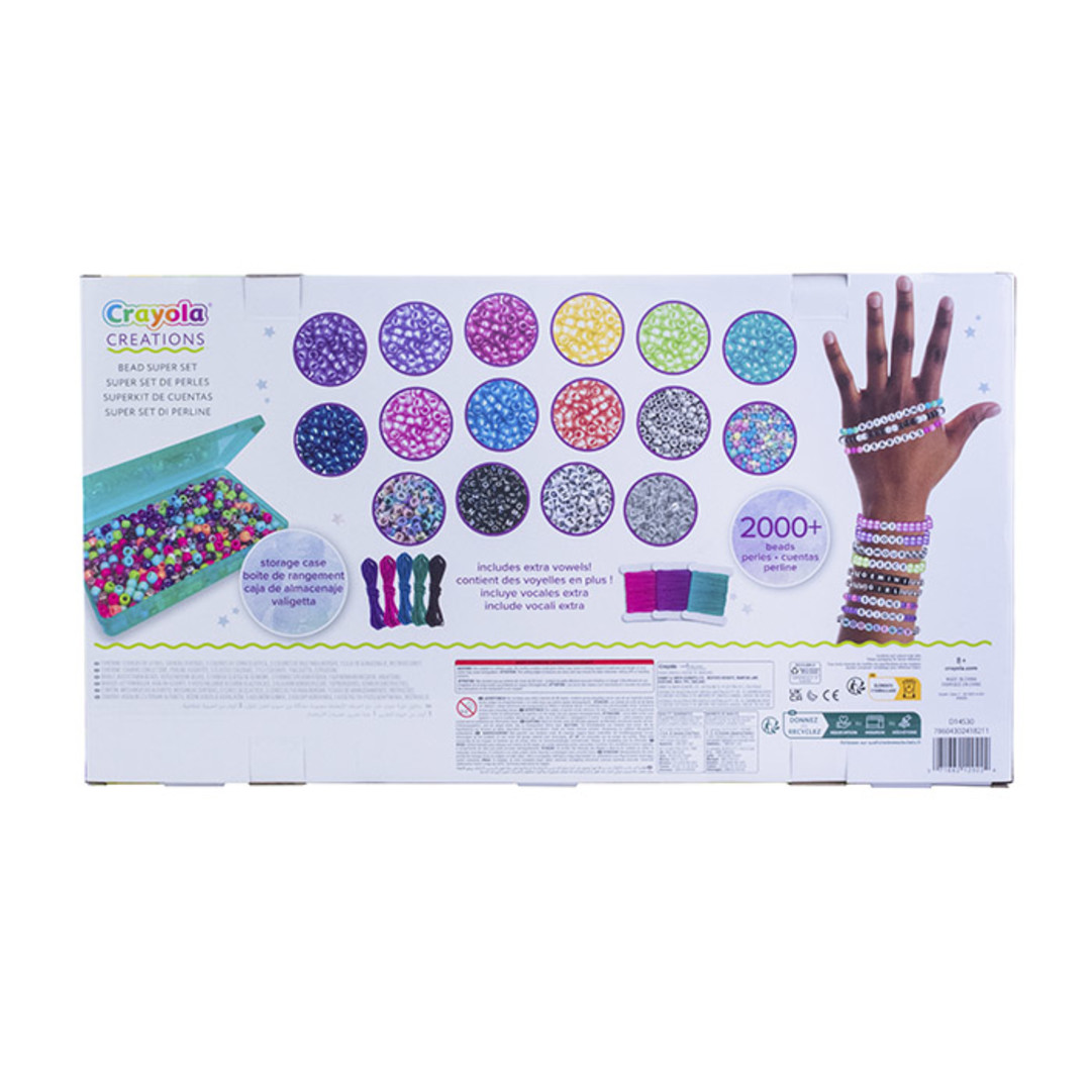• ¡Es hora de mostrar tu estilo único con el 2000 Bead Super Set! Crea pulseras personalizadas y diviértete haciendo combinaciones de colores que reflejen tu personalidad. Con 2000 cuentas para elegir, ¡las posibilidades son infinitas! Además, podrás compartir tus creaciones con tus amig@s y hacer intercambios para tener una joyería aún más original. ¡Sé tú misma, haz brillar tu creatividad y crea piezas de joyería únicas! No tóxico, seguro y perfecto para pequeñas diseñadoras de moda.