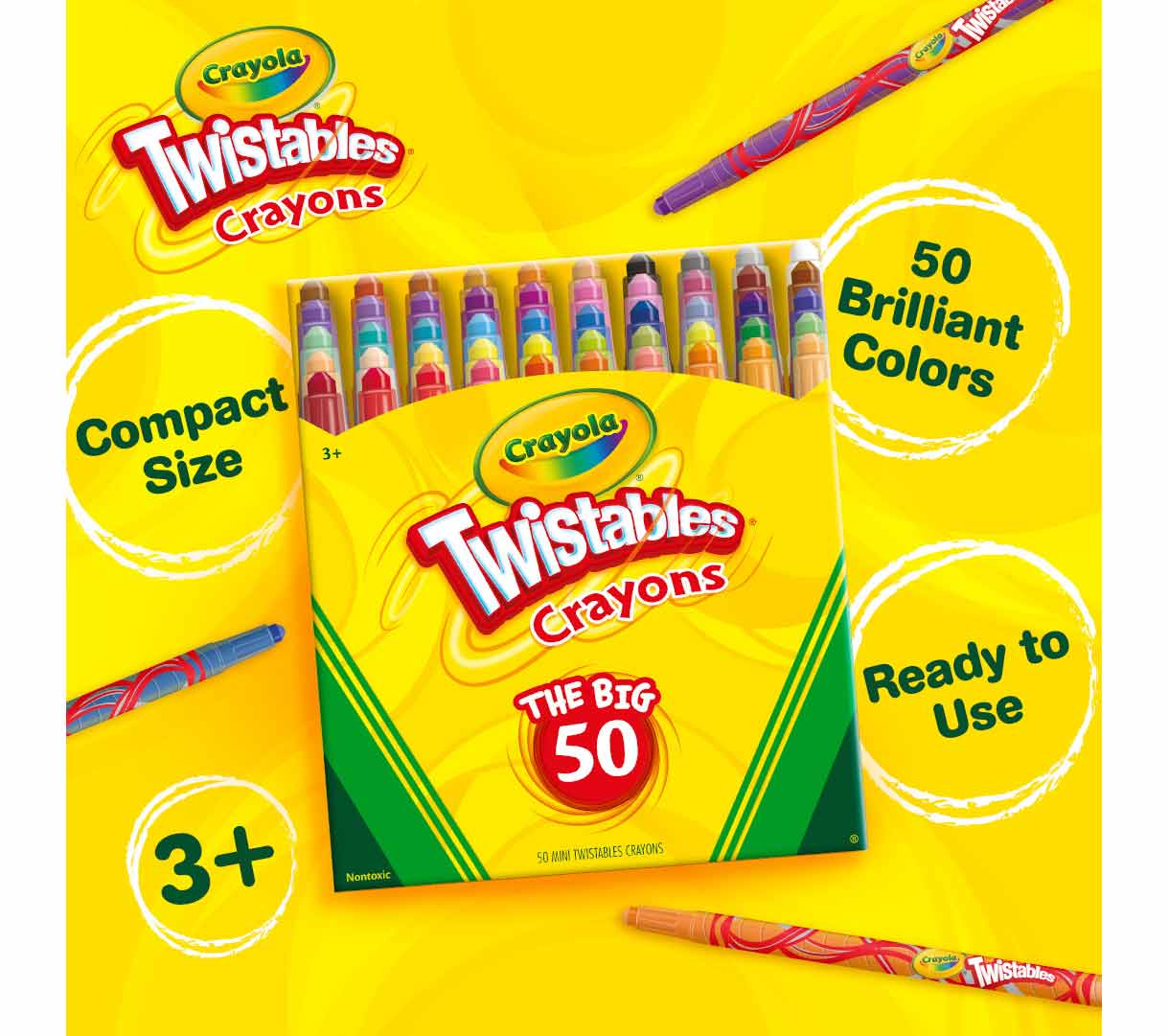 • MINI TWISTABLE CRAYONS: 50 Count Mini Twistables Crayons in assorted colors. The perfect size for little hands when coloring and creating.