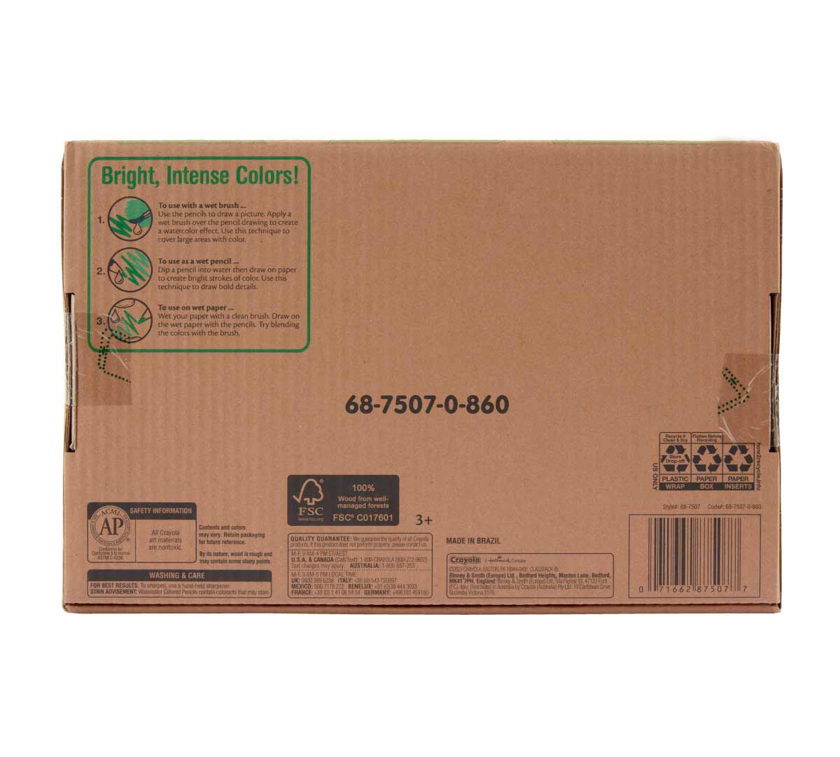 • Stock up on Crayola Watercolor Pencils for the whole classroom to share! This 240ct Bulk Watercolor Colored Pencils set features 12 assorted colors including: Sky Blue, Red, Blue, Magenta, Orange, Violet, Brown, Yellow, Green, Yellow Green, White, and Black. These unique Colored Pencils work with water to create fun watercolor effects, as well as dry for a more traditional coloring experience. With sticks of each color, this box is designed to last through DIY crafts, arts and crafts projects, and homework assignments all year long. Made from reforested wood and pre sharpened for easy use, Crayola is committed to providing premium quality drawing tools for artists of all ages. Safe and nontoxic, ideal for children ages 5 and up.