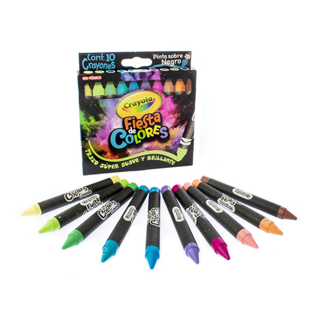 • 10 Crayones con colores brillantes y punta resistente.​ Ideales para los más pequeños y sus proyectos escolares así como para cartulina o papel de color oscuro