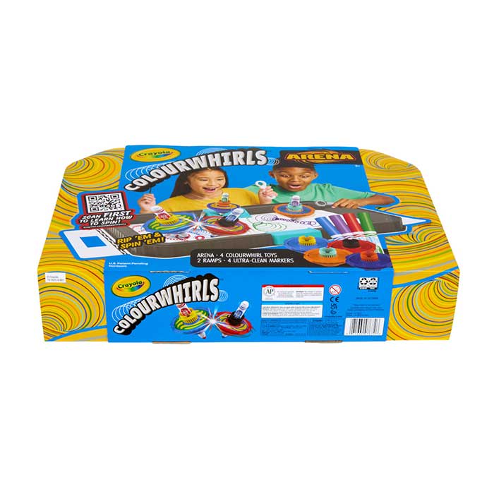 • Get ready to spin into action with the Crayola Colourwhirls Arena Set - a whirlwind of creativity and competition! This all-in-one kit includes 4 Colourwhirl Toys, 4 Ultra Clean Washable Markers, 2 Launch Ramps, and a spacious arena with built-in storage for easy clean-up and portability. Each rip and spin creates mesmerizing art, and with 12 collectible spinner colors, the creative combos are endless. Whether it’s a birthday, holiday, or just because, this gift-ready set brings instant fun wherever kids go. Safe, washable, and packed for play, it’s the ultimate creative showdown for kids ages 6 and up!