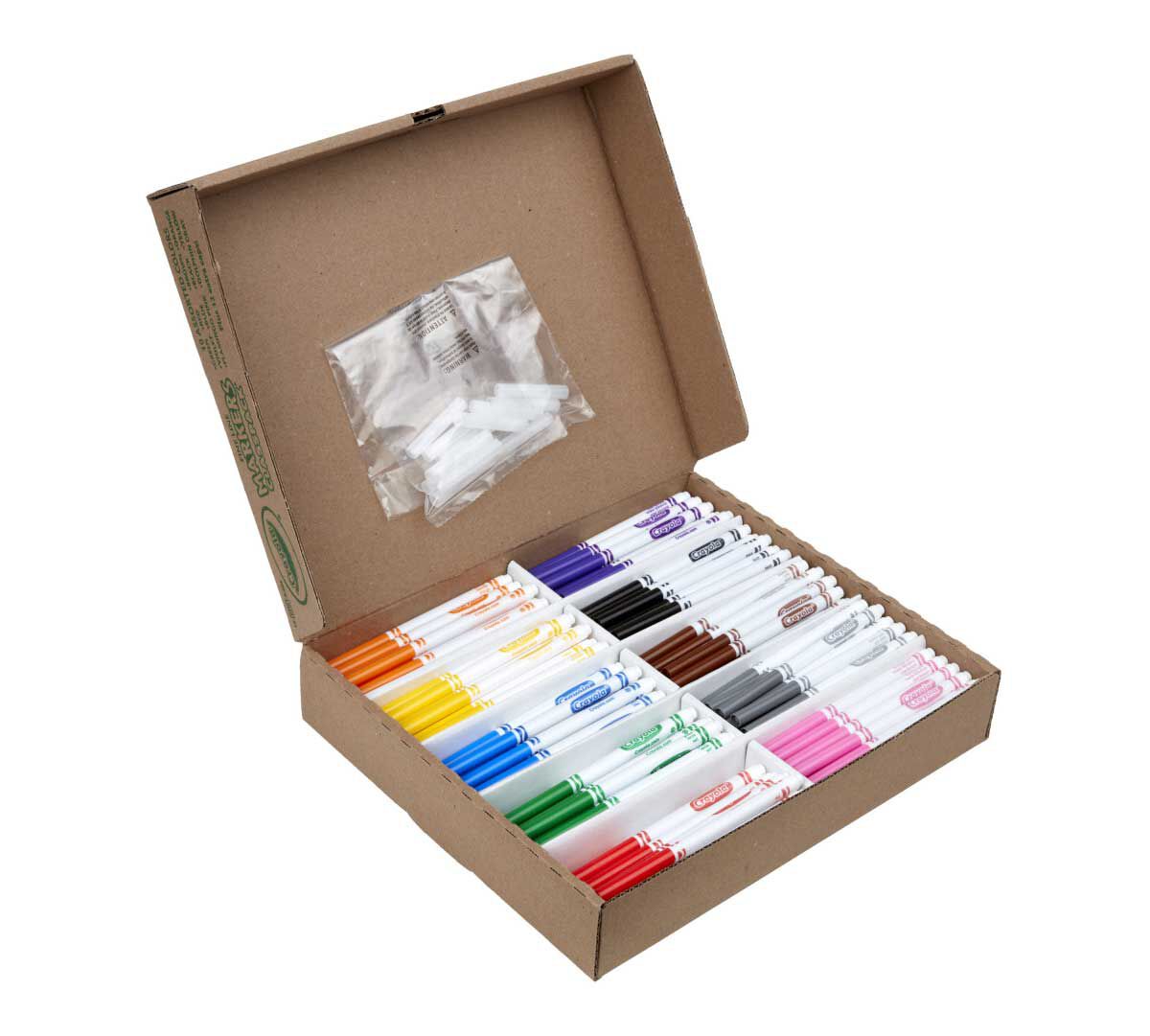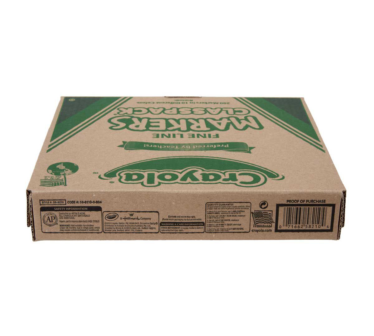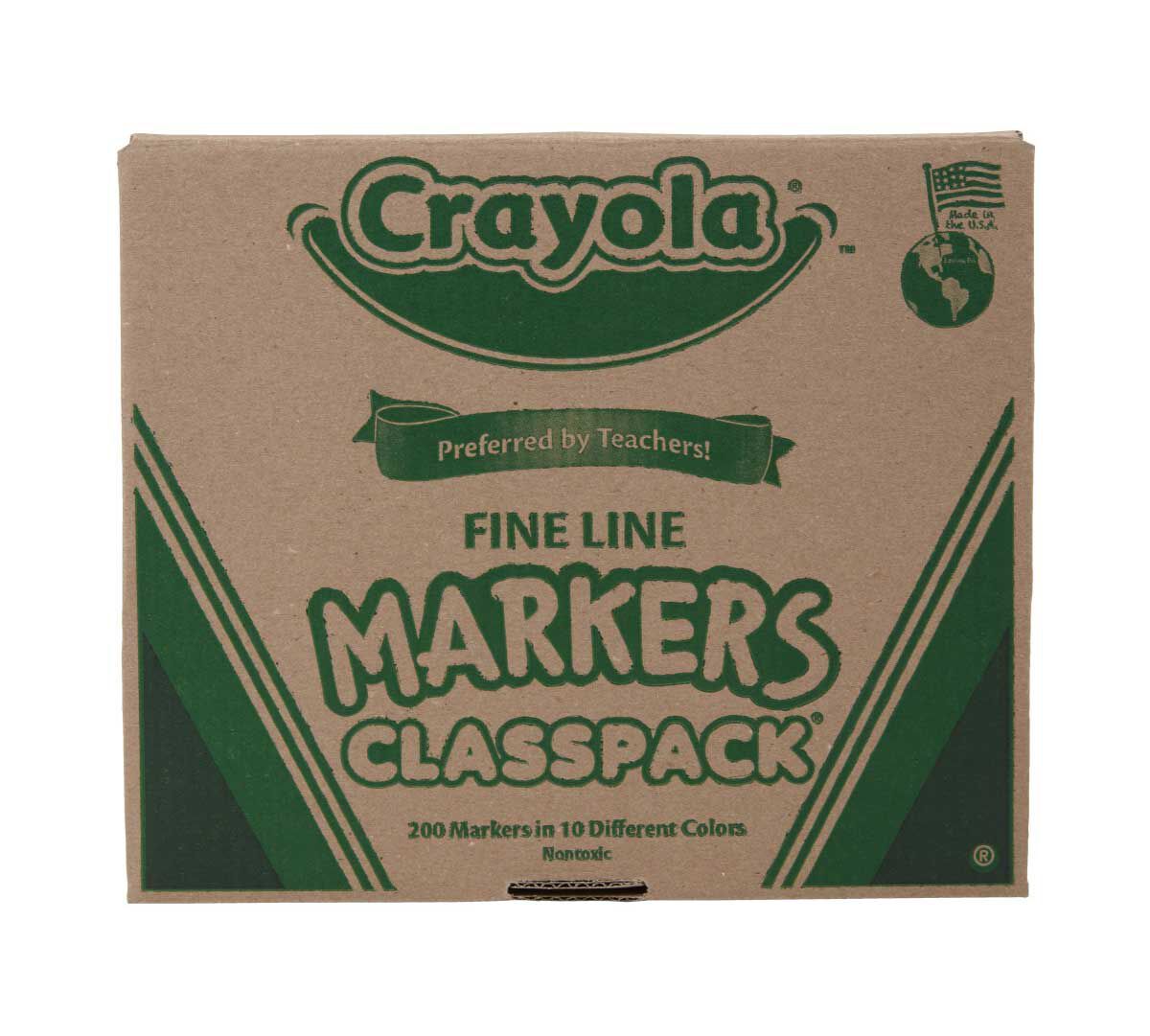 • Crayola Classic Fine Line Markers are the classic, long-lasting, durable markers you know from your childhood. They lay down lots of brilliant color, yet don't bleed through most paper. Put students' imaginations to work with these classic, long-lasting, durable markers which lay down lots of brilliant color, this bulk Fine Line Marker Classpack includes enough supplies for the entire class! A total of 200 markers are included. There are 20 markers in each of the following 10 colors: Brown, Yellow, Orange, Red, Violet, Blue, Green, Black, Flamingo Pink, and Dolphin Gray.