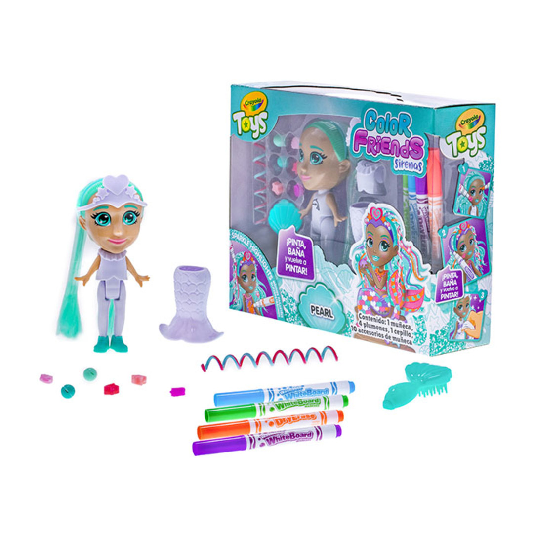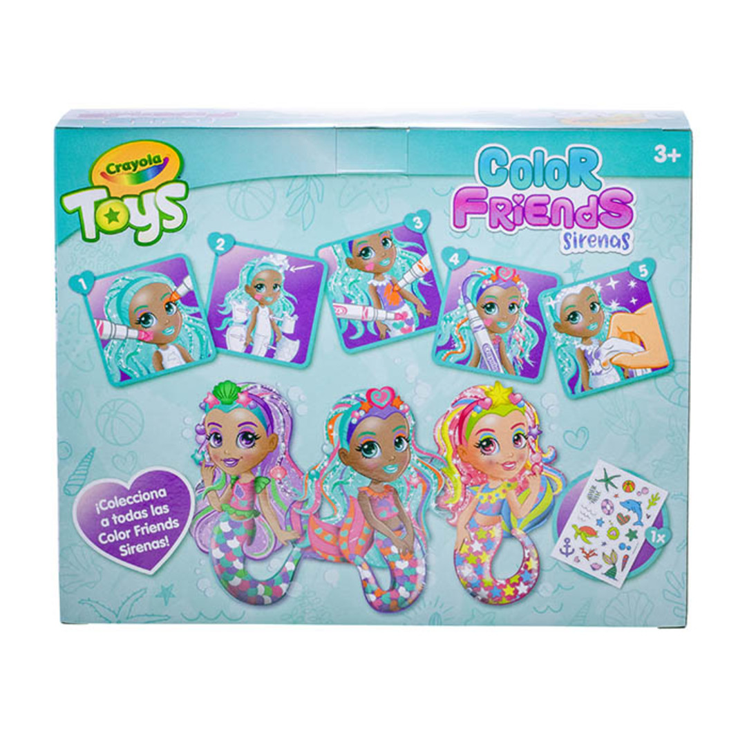 • ¡Conoce a tus nuevas amigas, las Color Friends! Decora su cabello, rostro y accesorios, ¡y no olvides pintar su cola de sirena!